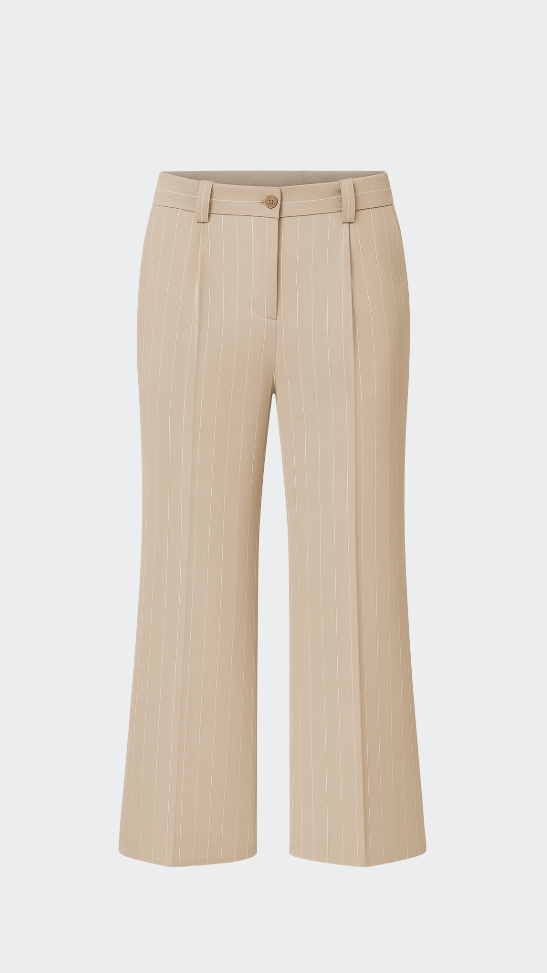 Pantalone a pences con fantasia gessata, realizzato in tessuto leggero e strutturato.Vestibilità regolare, ideale per outfit eleganti o business casual