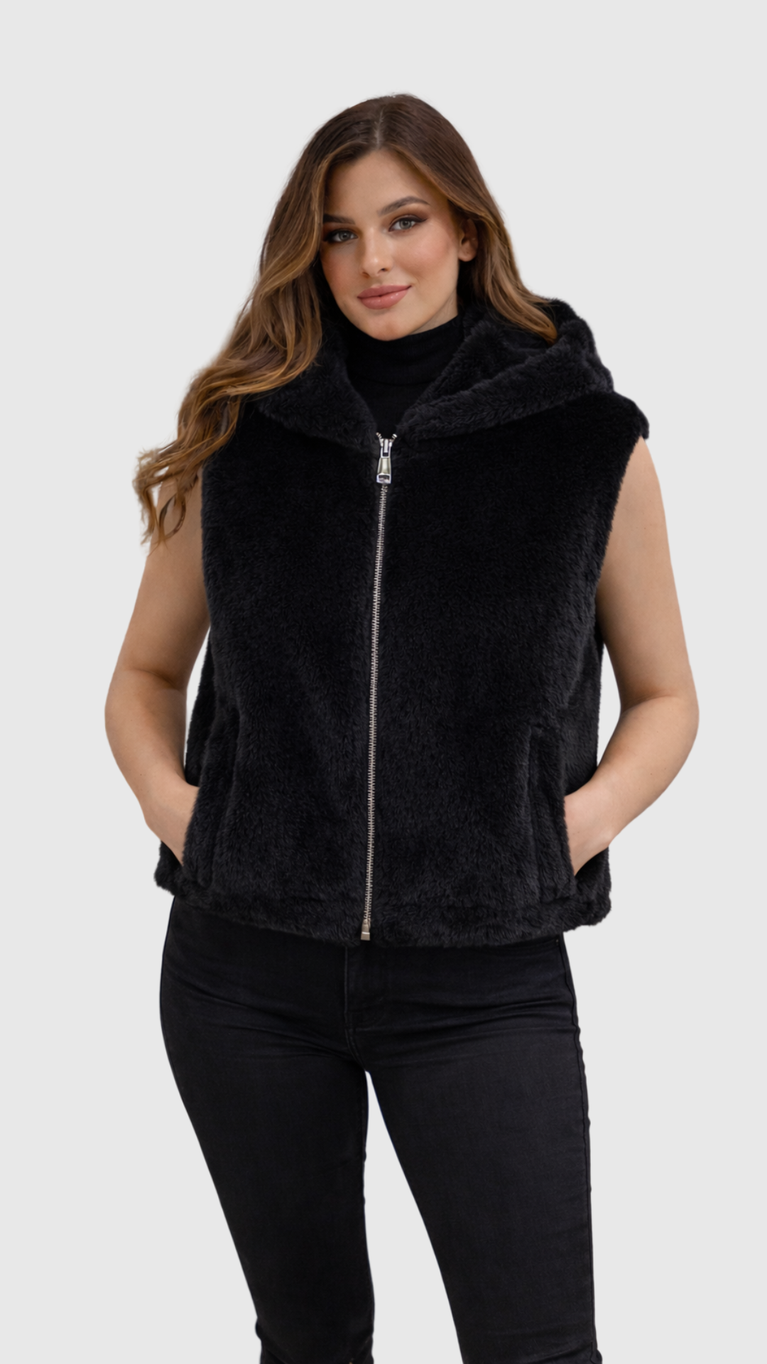 EMPA - GILET CON CAPPUCCIO ECOPELLICCIA