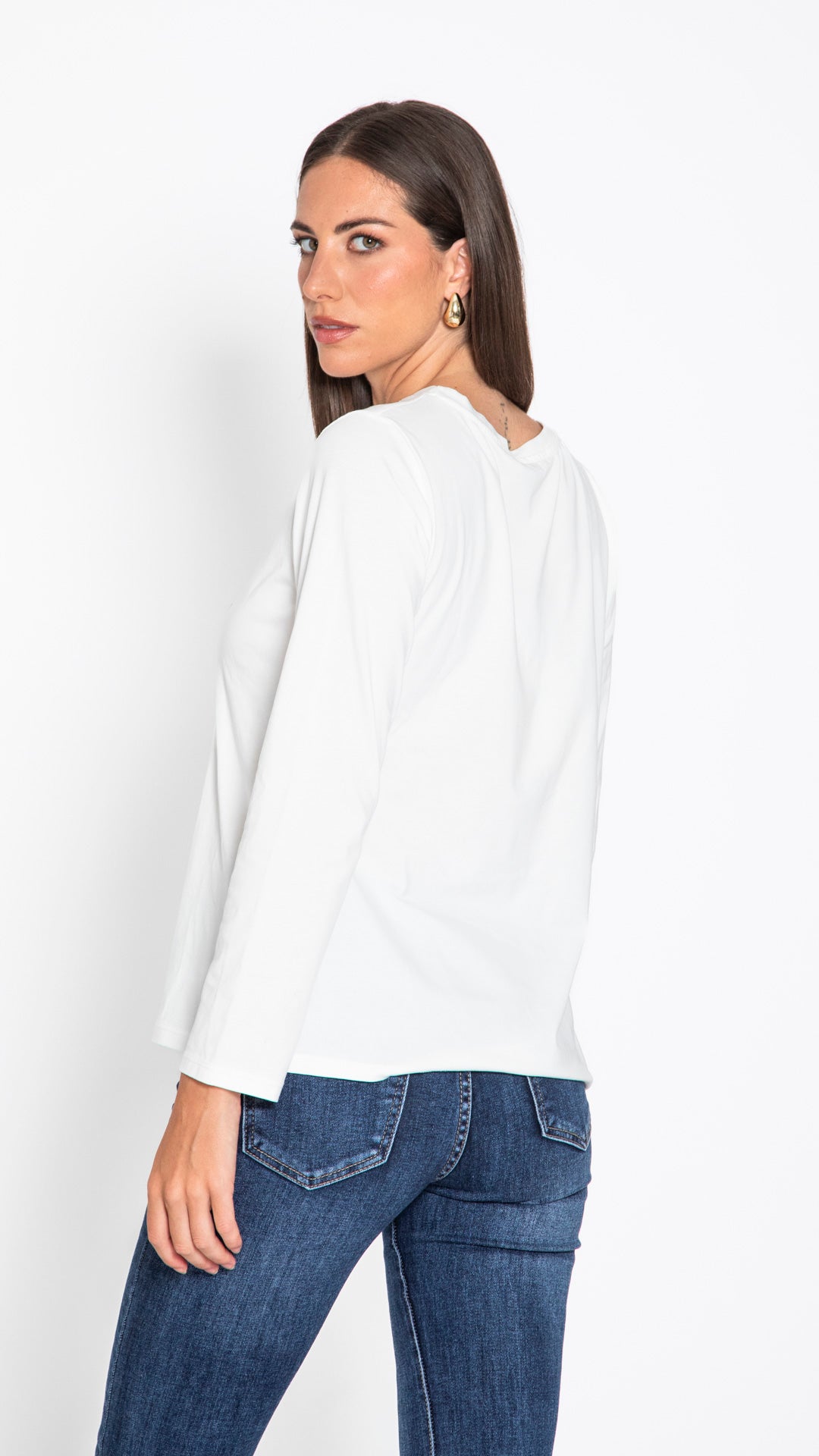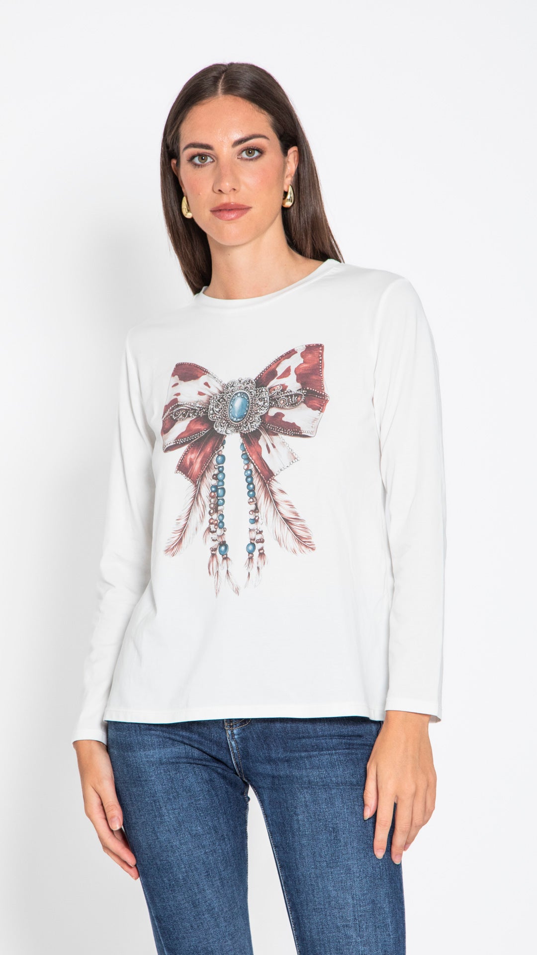 Un dettaglio raffinato che rende speciale un capo semplice. Questa T-shirt, realizzata in morbido cotone, è arricchita da un fiocco decorativo che dona un tocco femminile e distintivo al look quotidiano. Facile da abbinare, perfetta per outfit casual chic