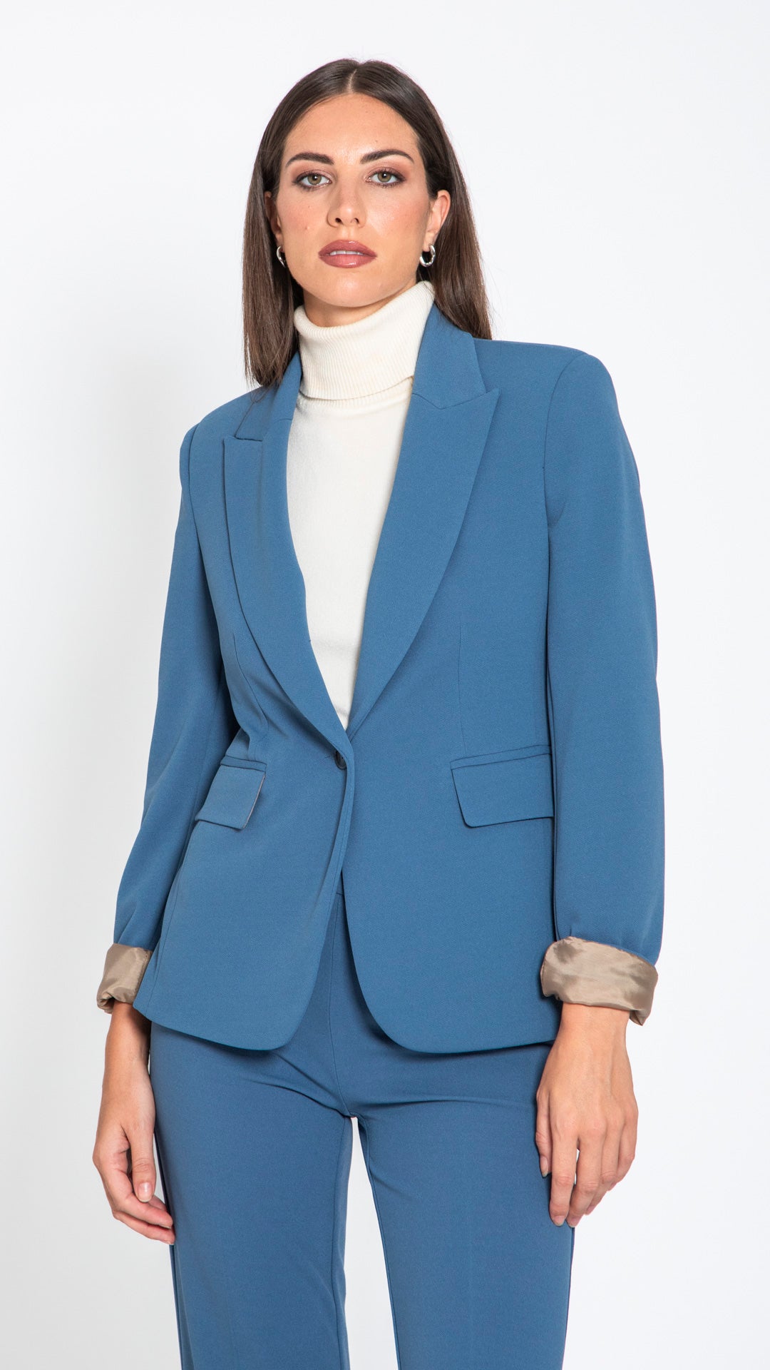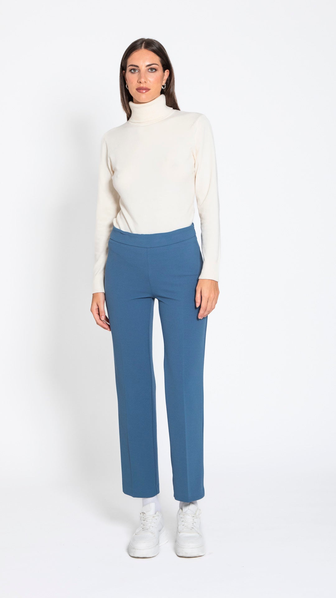 Completo pantalone in tessuto scuba EDAS. Elegante, comodo ed elastico, perfetto per outfit da ufficio o occasioni speciali