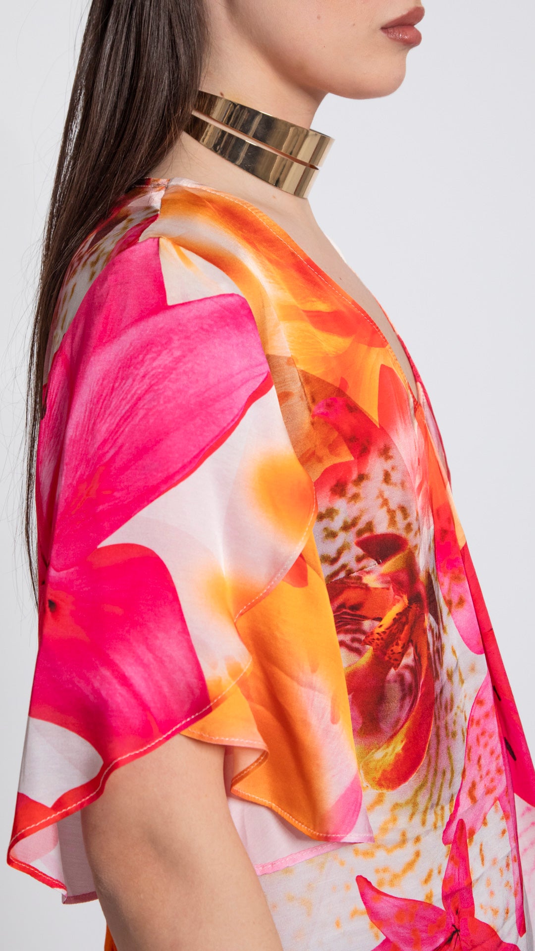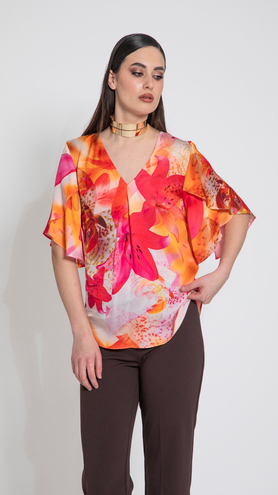 Casacca con manica volant. Tessuto fluido. Design dritto. Scollo rotondo. Maniche con volant. Vestibilità regolare. Linea femminile e raffinata. Finiture curate. Chiusura senza zip. Capo elegante e versatile. Ideale per look da giorno sofisticati o outfit eleganti.