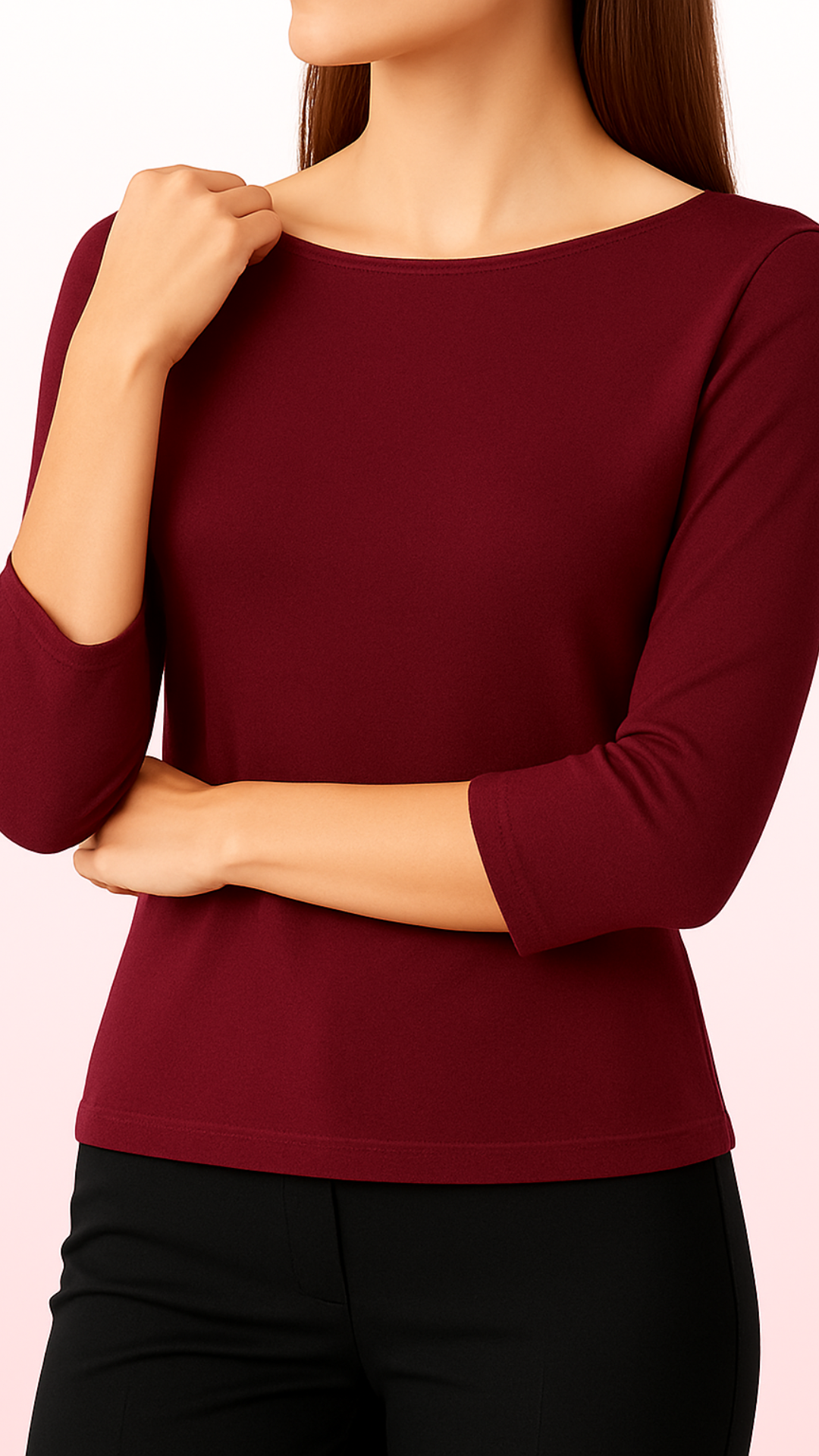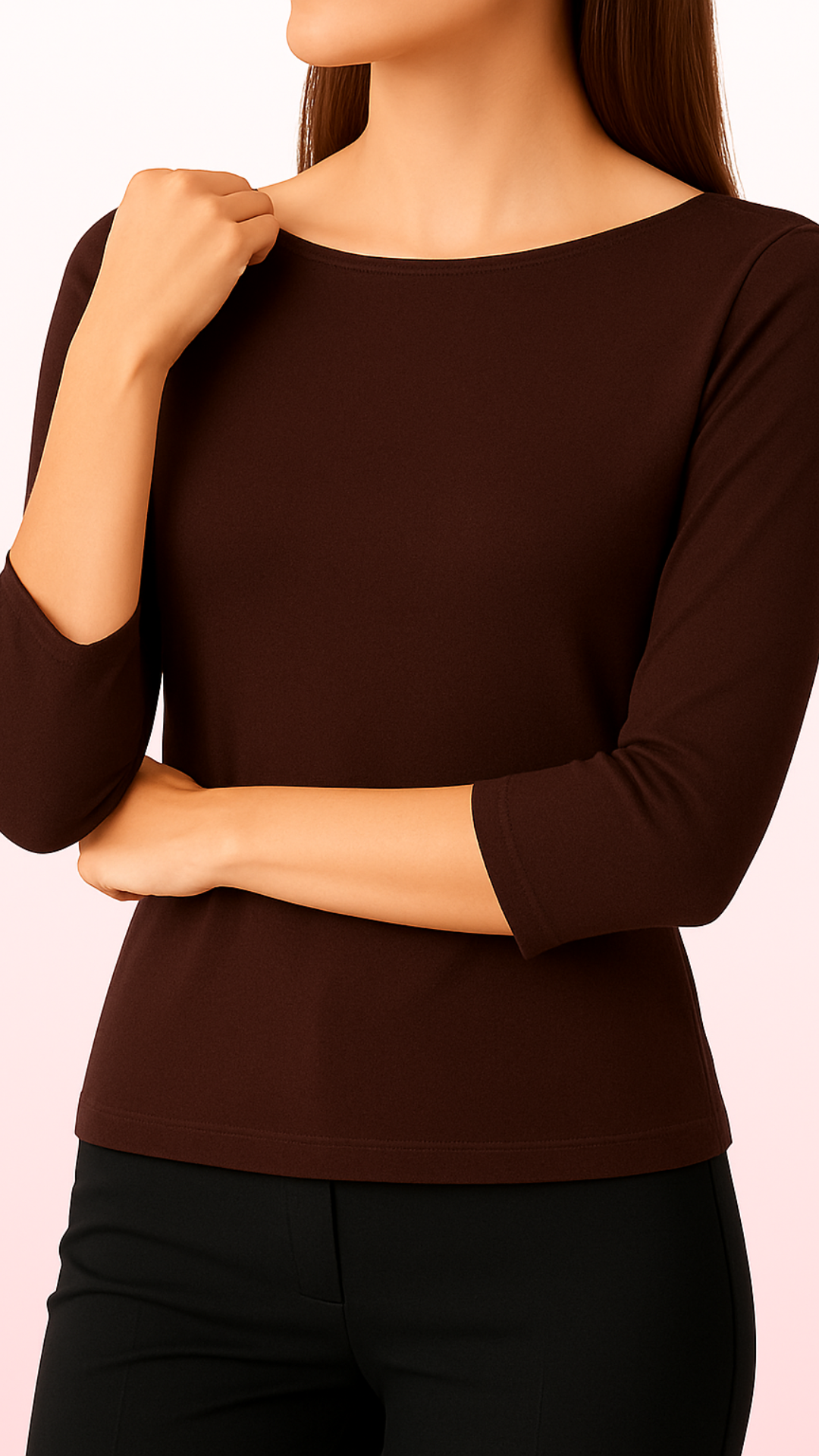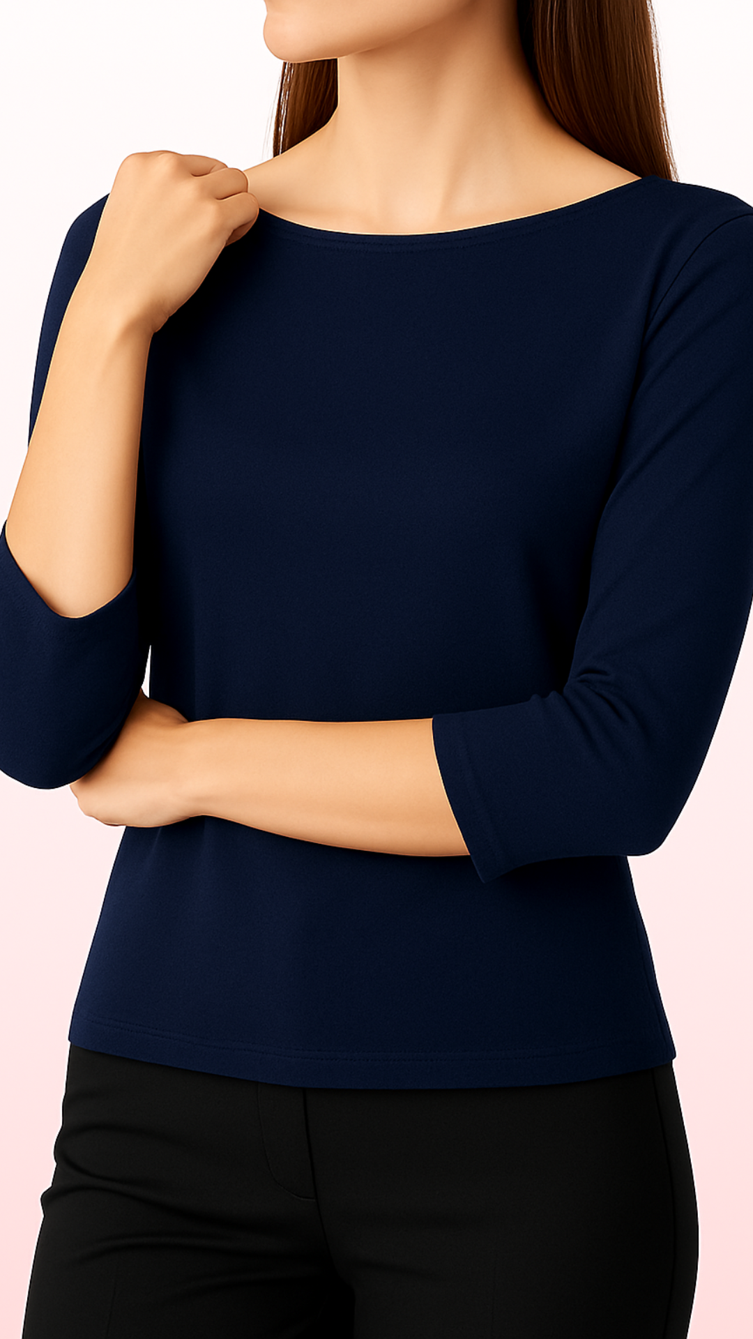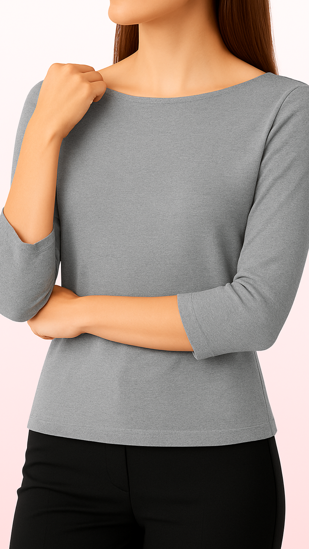 Linee morbide e silhouette rilassata. La manica 3/4 dona un tocco essenziale e sofisticato, perfetto per look puliti e moderni