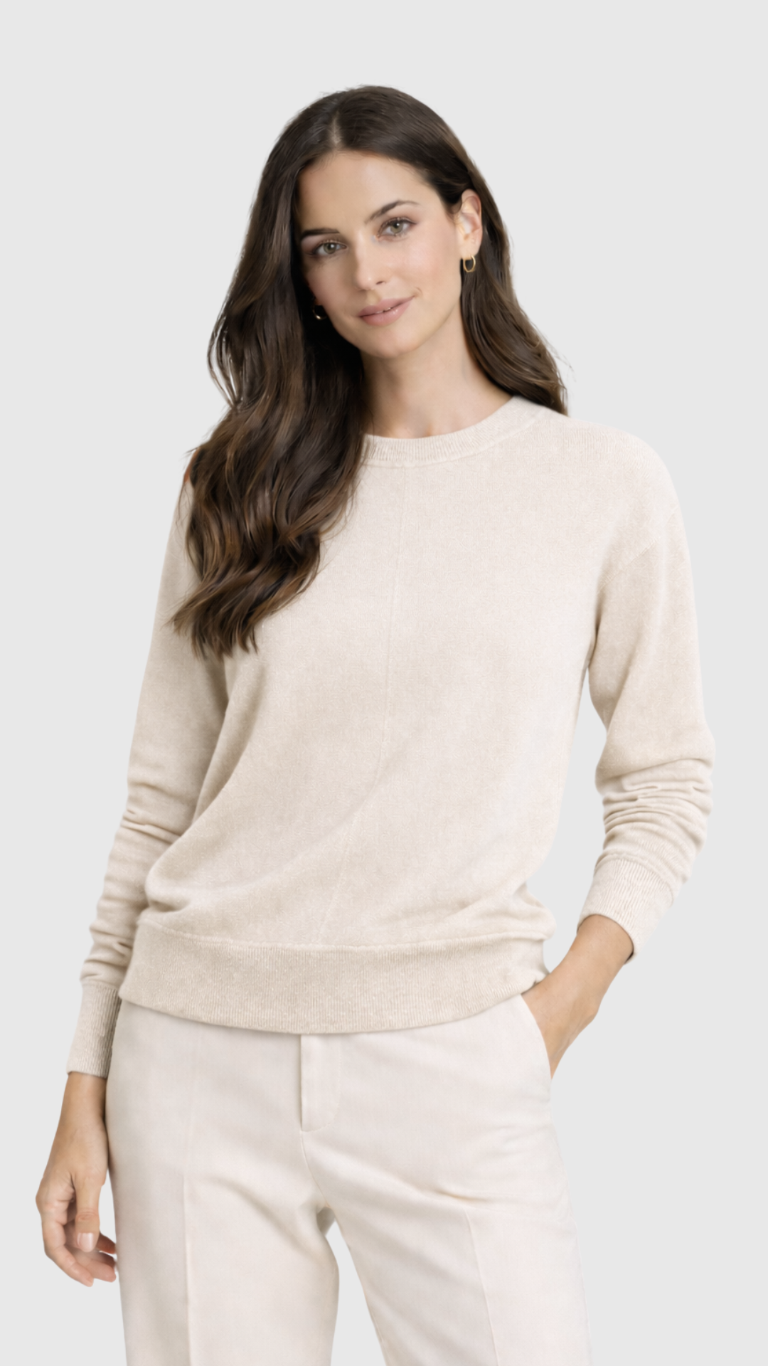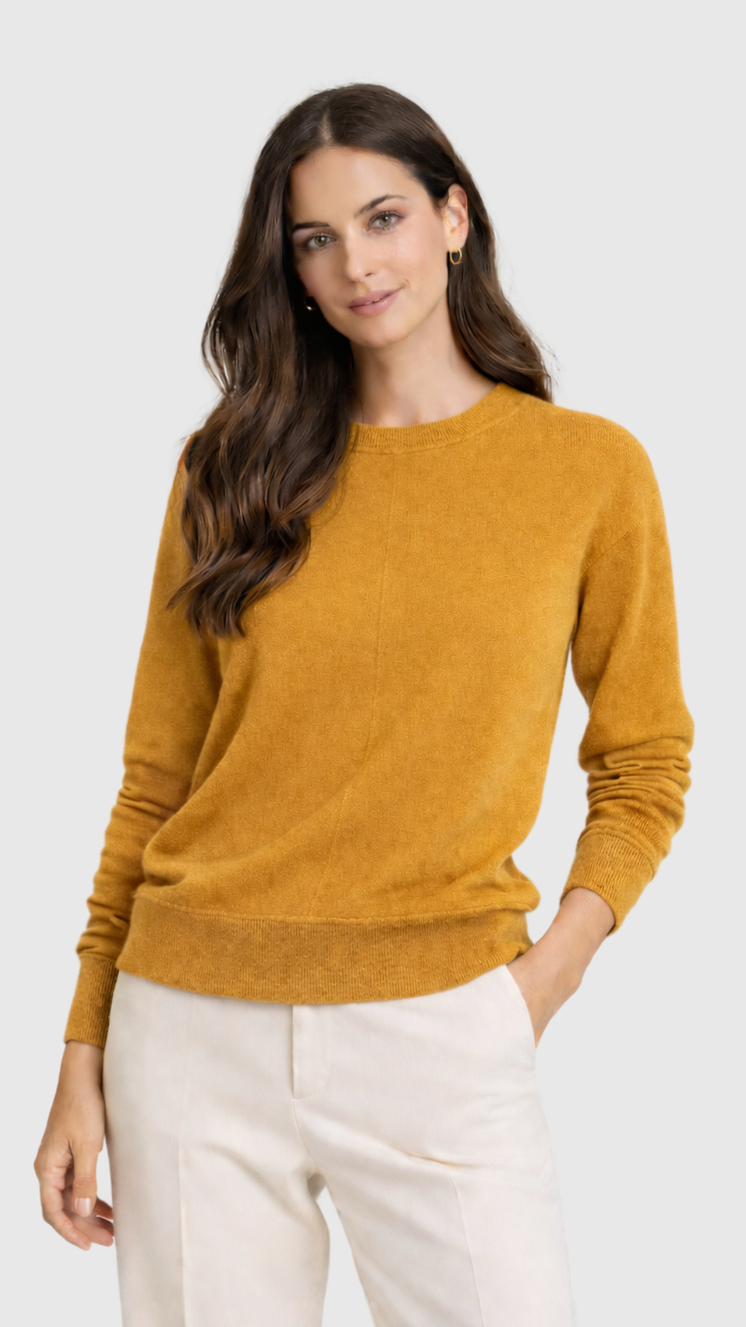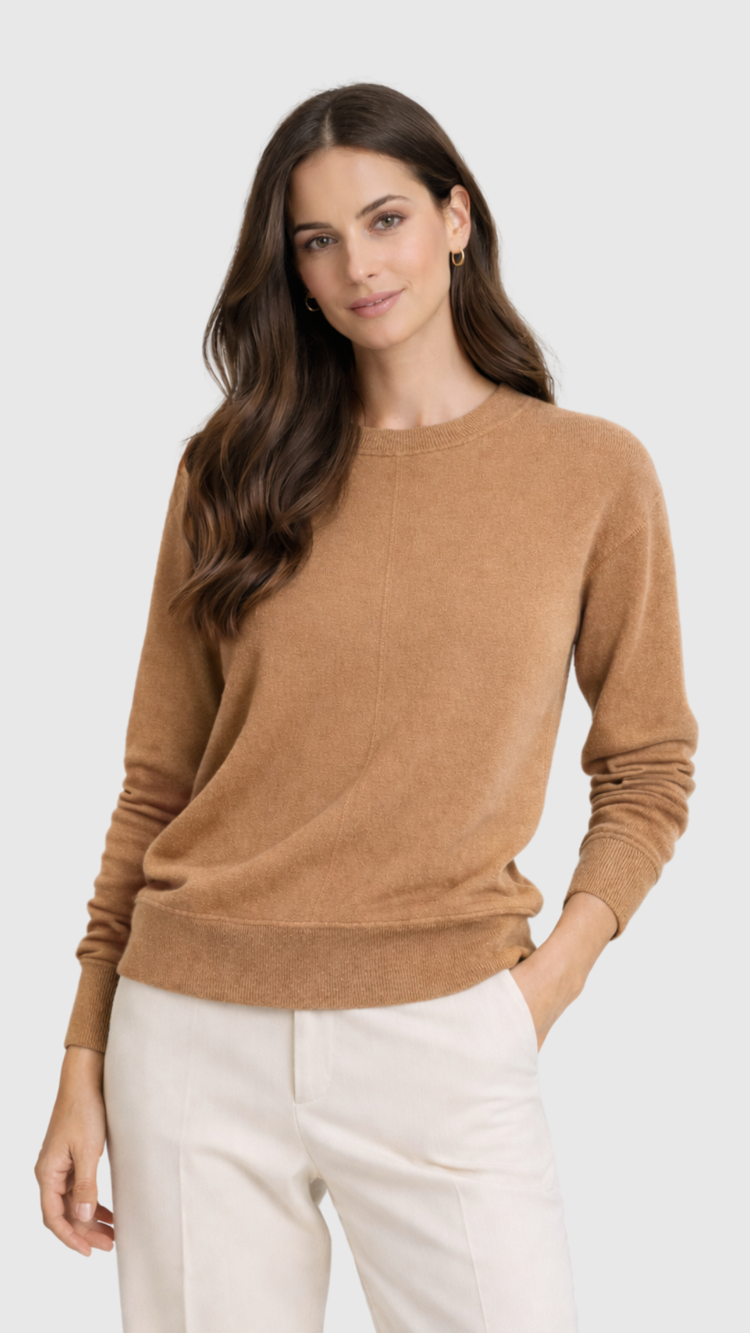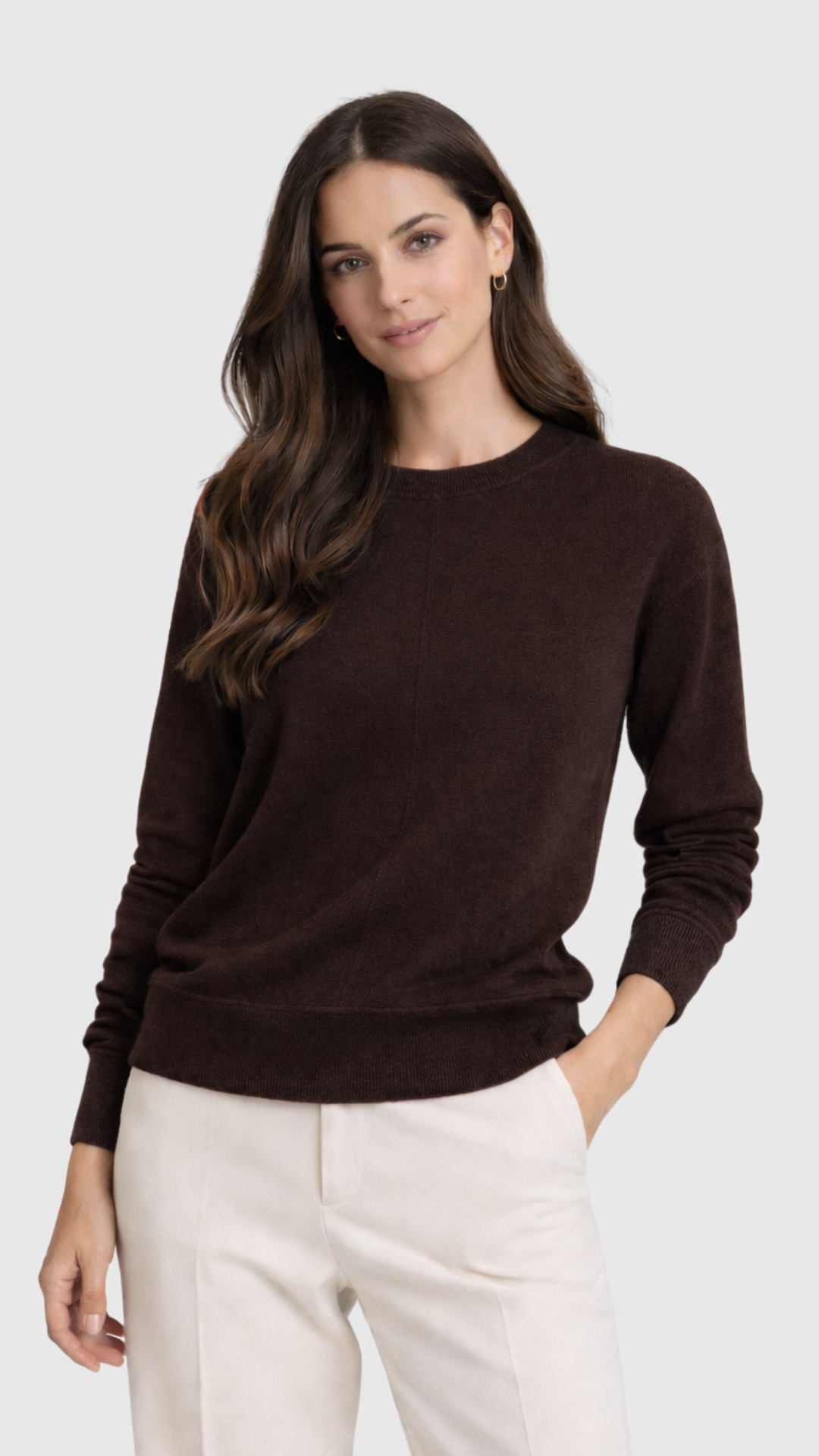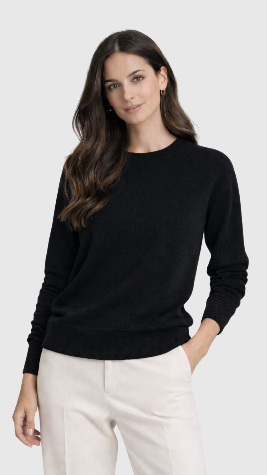 Maglia in morbido misto cachemire, leggera ma incredibilmente calda, pensata per offrire comfort e raffinatezza in ogni momento della giornata