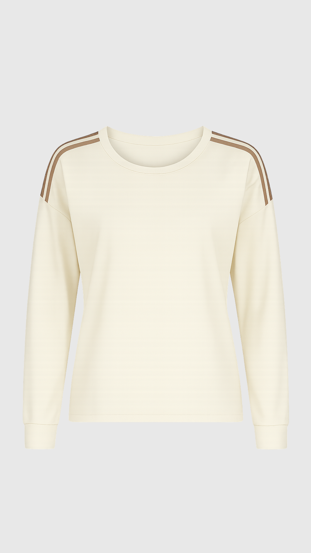 Un capo essenziale arricchito da un tocco elegante: la passamaneria dona carattere e raffinatezza al classico girocollo. Perfetto per chi cerca uno stile semplice ma curato nei dettagli
