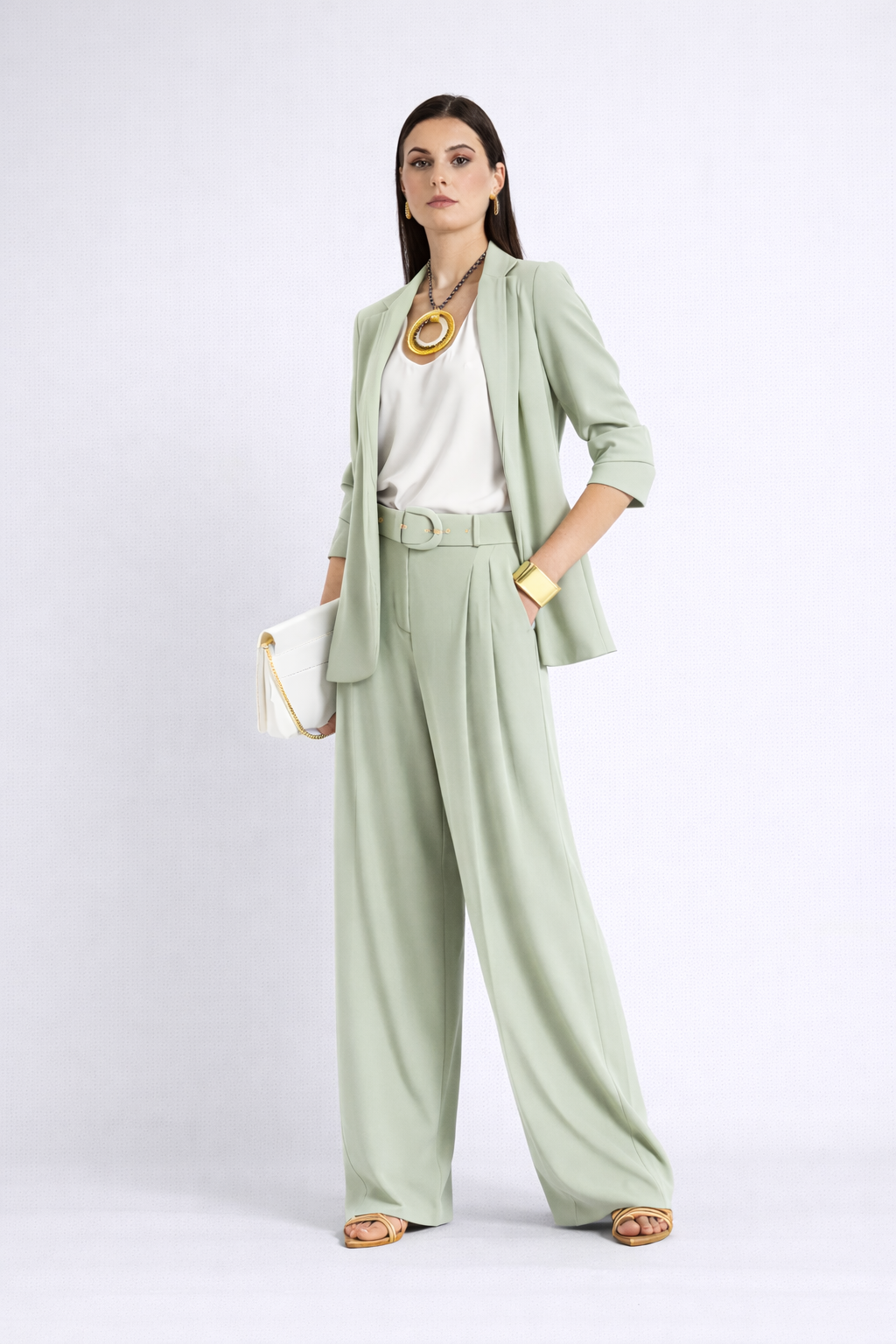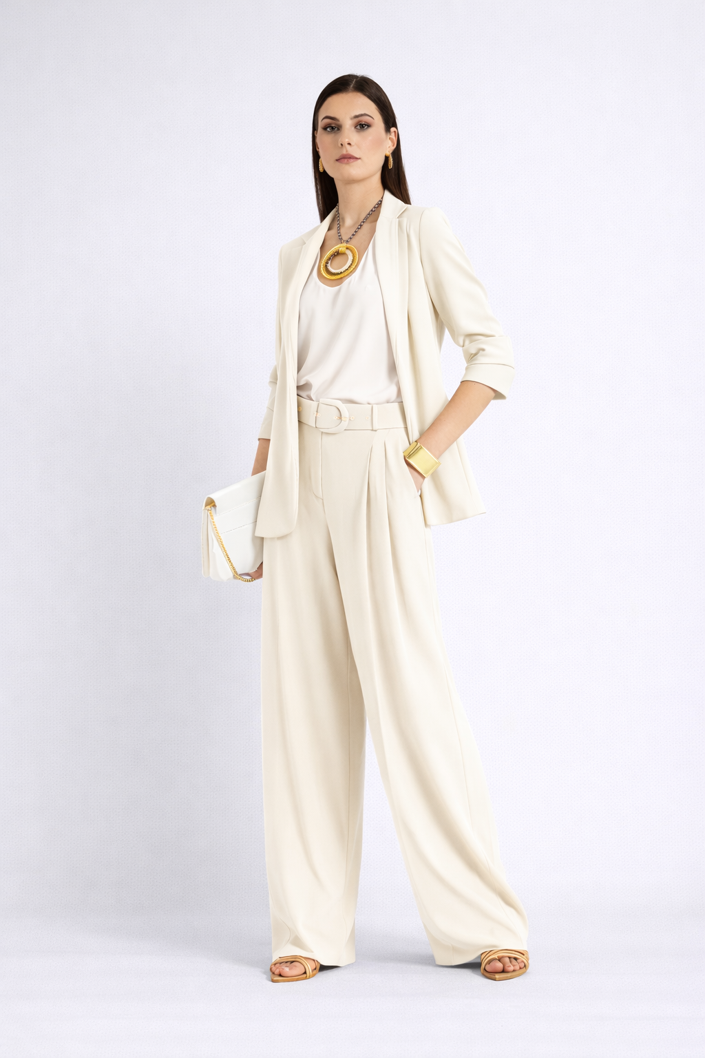 Pantalone con pince in cadì. Tessuto fluido e strutturato. Design dritto. Vita regolare. Gamba lunga. Vestibilità regolare. Pince frontali. Linea elegante e raffinata. Finiture curate.