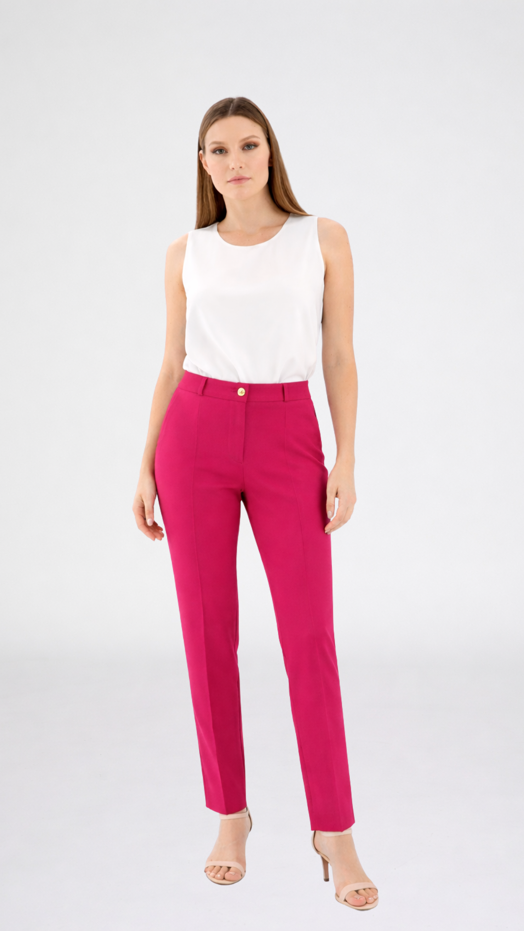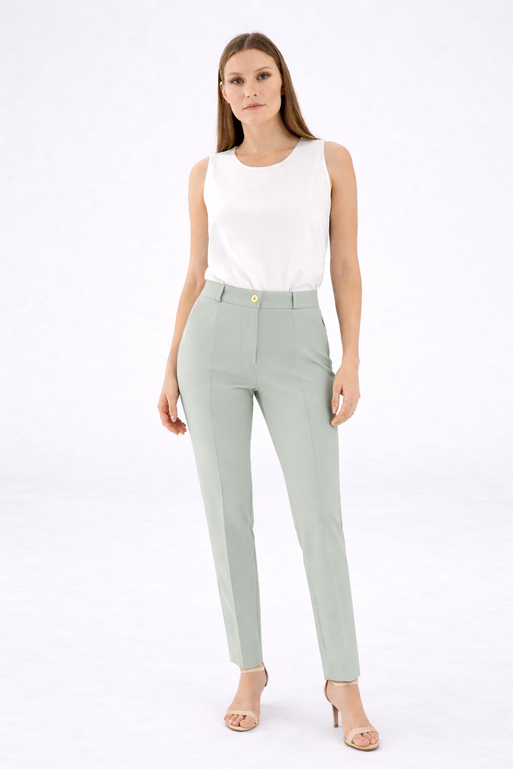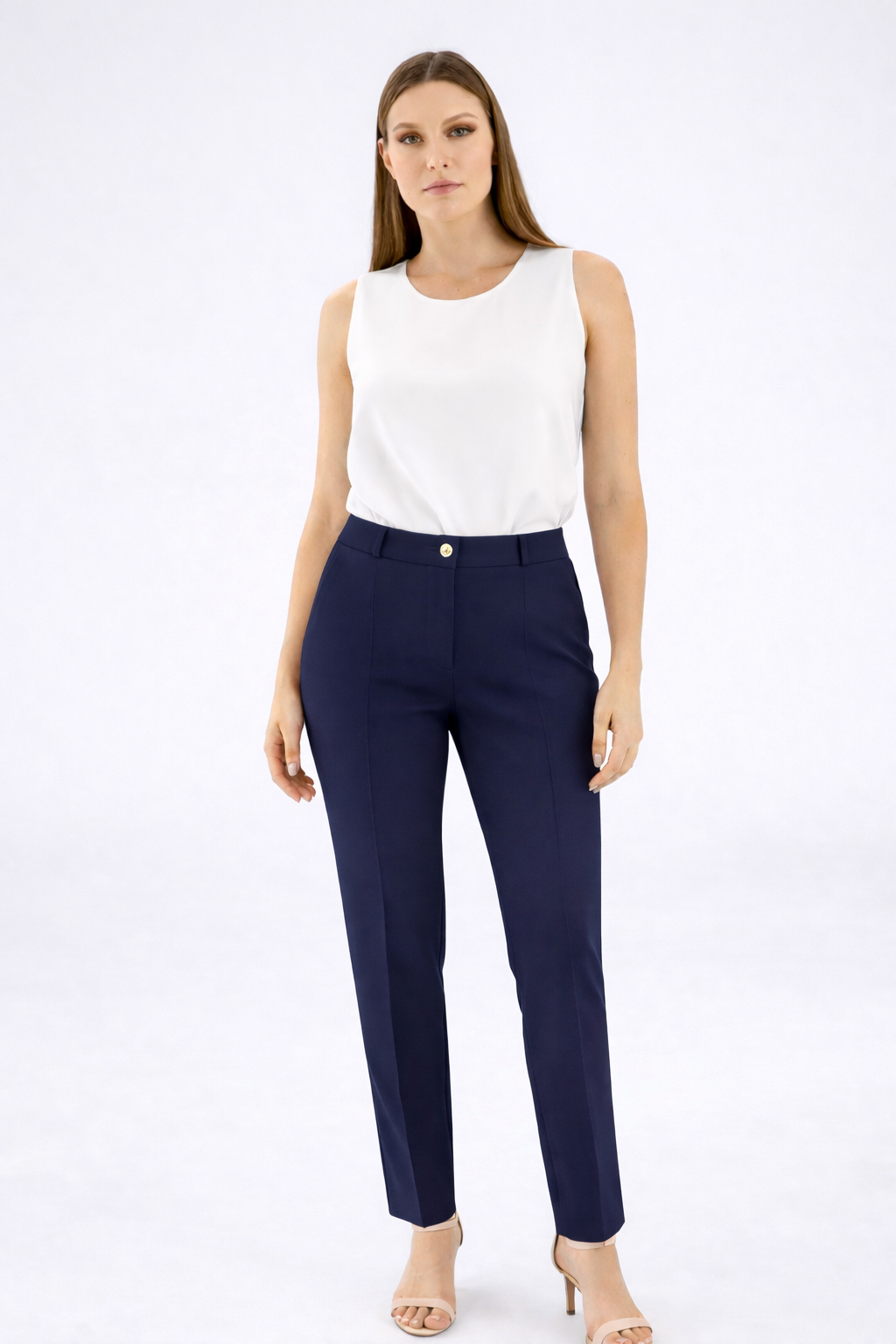 Pantalone capri in cadì. Tessuto fluido e strutturato. Design dritto. Vita regolare. Lunghezza capri alla caviglia. Vestibilità regolare. Linea elegante e contemporanea. Finiture curate. Chiusura con zip e bottone. Capo femminile e versatile. Ideale per look sofisticati da giorno o outfit eleganti.