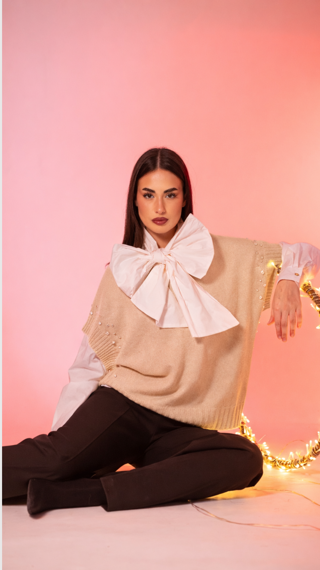 MARTINO - MAGLIA SMANICATA CON APPLICAZIONE STRASS